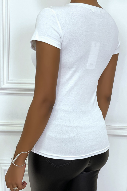 T-shirt blanc avec écriture "I LOVE YOU" coeur en sequin fuschia, à manches courtes et col rond. Simple et agréable à porter.